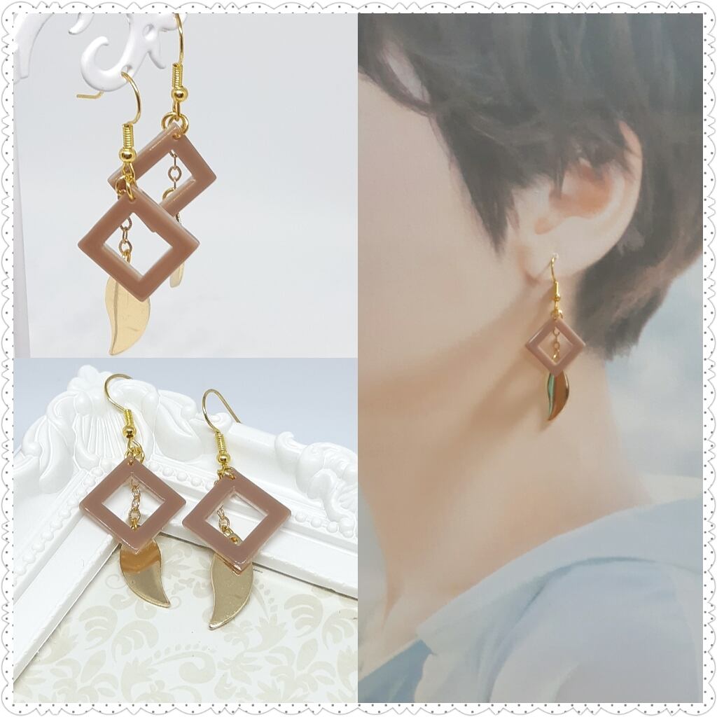 スクエアチャームの後ろでさりげなく揺れる大人な雰囲気のピアスです!