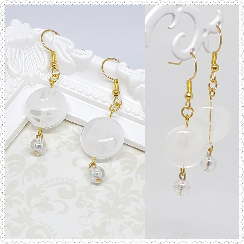 透明感のあるクリアチャームが印象的なピアスです!