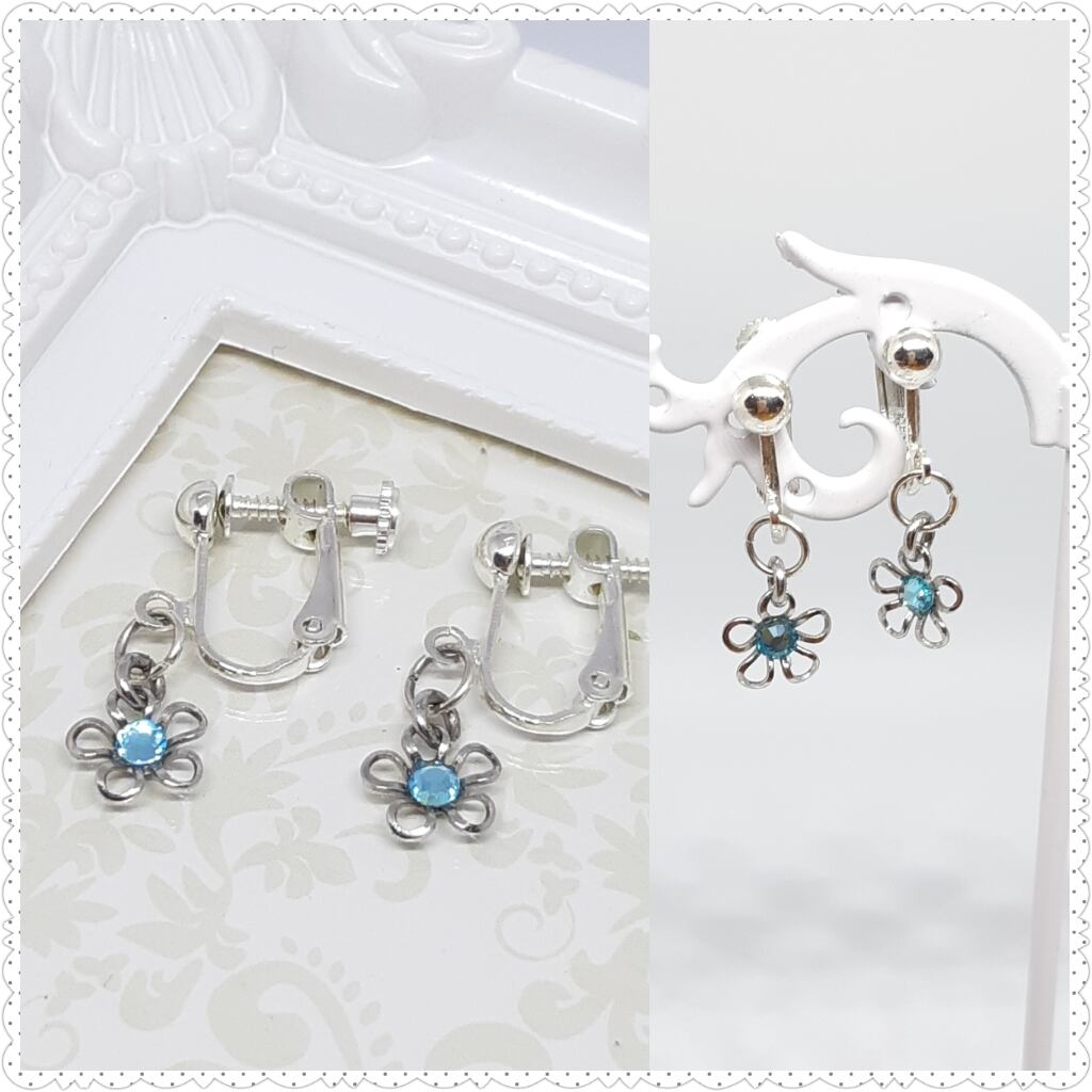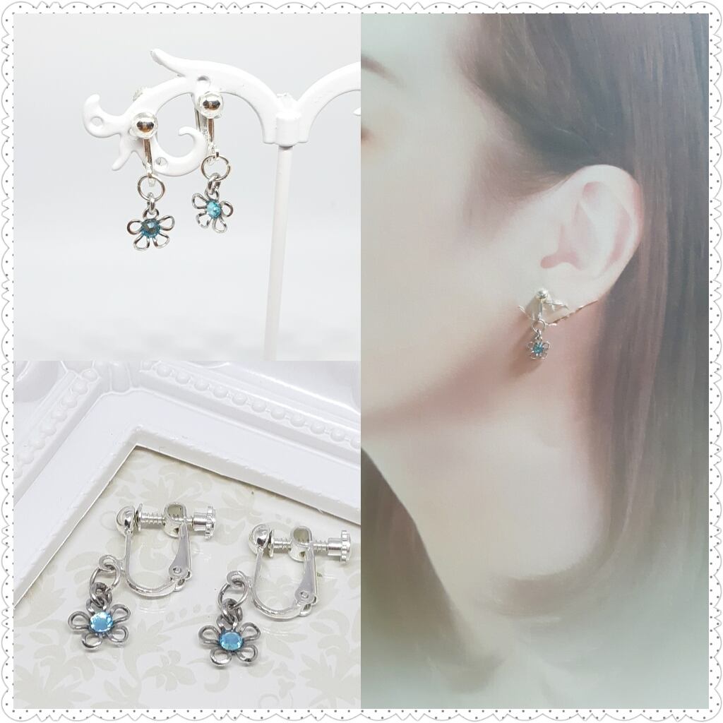 【No.19】フラワーチャームのイヤリング(シルバー)
