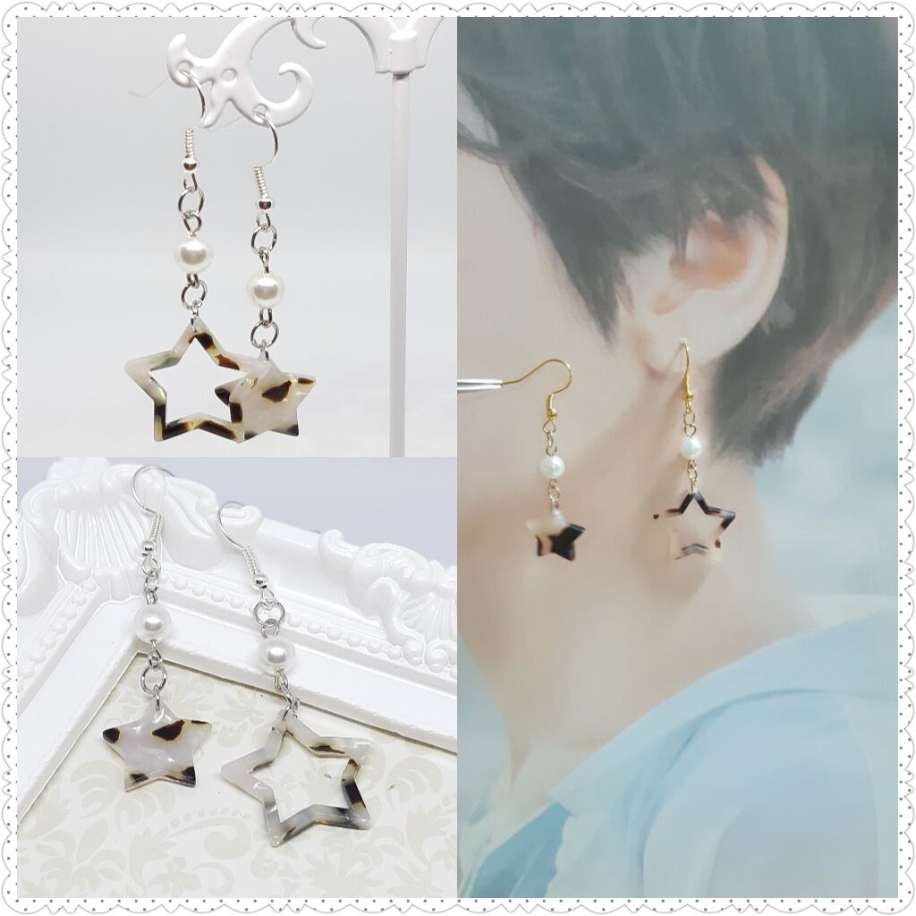 左右で違うタイプの星のチャームがアクセントになったデザインです!